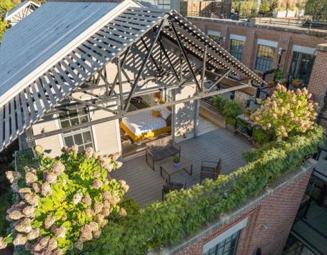 A Penthouse in the Sky. Welcome to your private oasis in Davis Square. This one-of-a-kind unit at the sought after Davis Lofts community offers the ultimate indoor-outdoor lifestyle, surrounded on three sides by approx. 1,000 SF of newly designed outdoor space. Reimagined with lush greenery, custom planters, and built-in seating, the multiple terraces offers space for lounging, dining, or yoga, creating a tranquil retreat and quiet escape from the urban bustle below. Inside, find a modern open layout featuring a stunning kitchen with soapstone counters & high-end appliances, and a spa-like bath w/ soaking tub and steam shower. Two garage-style doors open to the decks for a light-filled cross breeze flowing through your home. This unit includes automated blinds, A/C, radiant heat flooring, and deeded garage parking. Close proximity to the Minuteman Path, Red Line, and all Davis Square has to offer. This is truly a penthouse escape: peaceful, quiet, and unlike anything else in the city.