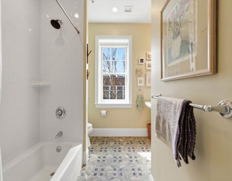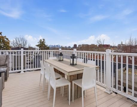 Welcome to the beautifully appointed and sophisticated living at the transformed St. Ann's Convent. The exclusive use 330+ sf rooftop deck in Somerville, not unheard of but something to see! Your foyer is it's own living space outside your front door. Once you enter, the space is breath taking with open living space, hardwood flooring, custom built-ins, fire placed living room, custom metal subway back splashed kitchen with oversized island, dining area, specialty art lighting, 9' ceiling height, deep ledge windows, and a home office. Down the extra wide hallway to continue your journey. The Primary retreat includes two closets with en-suite bathroom showcasing shower, tub, double sink and stone tiled floors. Main full bath with mosaic-like stone flooring, laundry area, 2 spacious bedrooms and up to the private roof top deck. Exclusive use patio at ground level. Private basement storage 13'x17'. Two car parking, close distance to Gilman Square, Green Line, restaurants, cafes and more