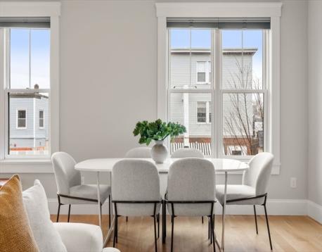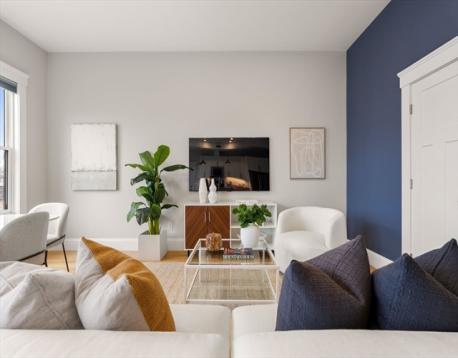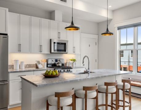 This stylish 2015 residence is part of a nine-unit association located within a mile to Porter and Union Squares. Perched high above Somerville Avenue, the unit offers a flexible layout in the main living area, plus an office/guestroom. Ten foot ceilings, bountiful light and gorgeous sunsets lend a dramatic flair to the living, dining and kitchen areas, while the large island and gas range make week night cooking and entertaining equally special and fun. The luxurious primary suite features French doors to a balcony, a walk-in closet with custom shelves, and a marble clad bathroom. The second bathroom has a tub. Ample closet space, hardwood floors, gas-fired HVAC, Navien tankless water heater, in-unit laundry set in the rear entrance hall, and one covered parking space with an EV charger all add to this unit’s convenience. Close to Harvard and Lesley Universities, top restaurants, music venues, shopping and quick access to the Red and Green Lines.
