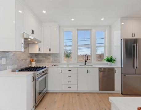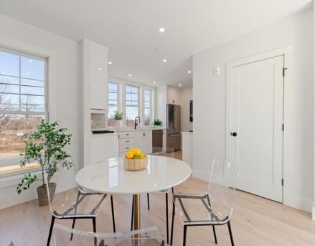 Welcome to the Residences at 656 Mystic Ave. Stunning new construction offering peaceful views of the Mystic River from all 3 levels of this luxury unit that offers 1561 sq ft of living space. Thoughtfully designed 2 bedroom & 2.5 bath units conveniently located just over 1 mile from Assembly Row & the Orange Line. Heated garage with one deeded space & one flex space with direct access to your home. Private outdoor space includes a fenced in patio and two balconies, one which has direct access from the primary bedroom. Total outdoor space is over 600 sq ft. This home offers Bosch SS appliances that include a gas range, dishwasher, refrigerator and washer & dryer. Quartz countertops and custom cabinetry in the kitchen and bathrooms. Kohler kitchen & bathroom fixtures. Engineered hardwood floors throughout all 3 levels with tile floors in the two full bathrooms.