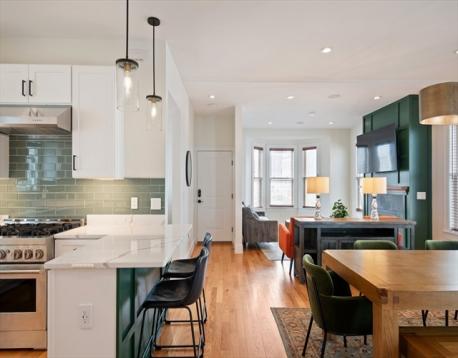 Situated on a tree-lined side street just minutes from Union and Inman Squares, this 3-bedroom, 3-bath multi-level condominium was thoughtfully renovated in 2022 and offers bright, modern living across 1,837 square feet with soaring ceilings throughout. The main level features hardwood floors and a well-appointed kitchen with quartz countertops, JennAir appliances, and ample cabinetry, plus a spacious dining and living area with a gas fireplace. There's also a generously sized bedroom and full bath with access to a private deck and deeded patio. The primary suite includes a marble bath and walk-in closet with built-ins, and there's an additional bedroom and full bath on the same level. Smart-home lighting, central A/C, in-unit laundry, and deeded parking with EV-ready capability complete this well-maintained two-unit association. Close to Lincoln Park, Whole Foods, and a 7-minute walk to the Green Line. Video tour: bit.ly/68concord