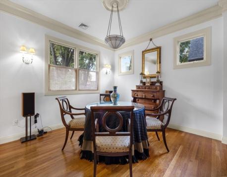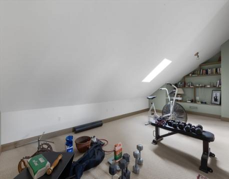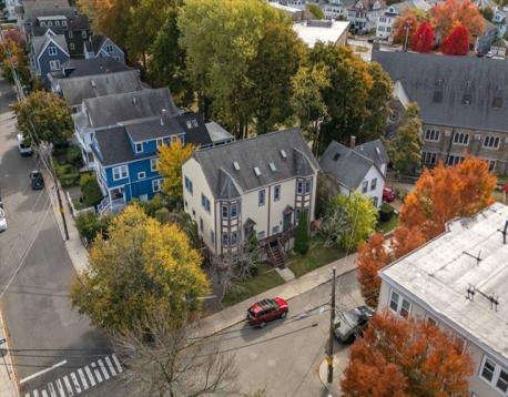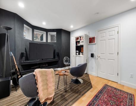 This unique Somerville townhome has over 2,300 sq. ft. of living space with a design that has thoughtful and tasteful detail. Featuring a pavilion-style kitchen accented in soft cream tones, custom crown moldings and a custom-built table, this unit is ideal for gathering and entertaining. Four spacious bedrooms and 2.5 baths span multiple levels. Plenty of skylights fill the unit with ample lighting. And a spiral staircase connecting the primary suite, with soaring 19ft high ceilings, to a private loft with extra storage or room for an office. For your viewing pleasure one bedroom has been converted into a home theatre/music room with a mini kitchen. Outside, enjoy rare yard space that feels like a garden retreat with a 6 person sauna, a patio and extra bike storage. Parking for three cars which is rare in Somerville. And a location on the Cambridge/ Arlington line- this property combines comfort, style, and convenience.