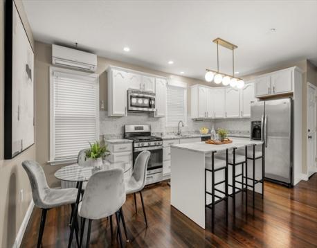 Nestled perfectly between vibrant Assembly Row and trendy Winter Hill, this stylish 2-bedroom condo blends comfort, convenience, and character. The open-concept layout flows effortlessly from the chef-inspired kitchen with granite countertops to a bright and inviting living and dining area—ideal for entertaining or relaxing. The spacious primary bedroom features double closets, and you’ll love the ease of in-unit laundry. Stay cool year-round with energy-efficient mini-split A/Cs—the only unit in the building with this upgrade! Includes deeded basement storage, 1 parking spot, and pet-friendly living (2 allowed). Just moments from the Mystic River parks, top-rated restaurants, and Assembly Row’s shopping and nightlife—this is Somerville living at its best! Stop by at either open house 10/25 or 10/26 from 11-1.