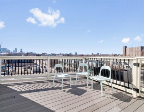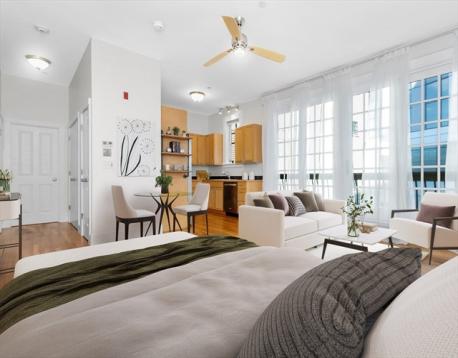 Enjoy city living in this bright and airy loft style top-floor studio on the Somerville/Cambridge line. This condo features floor to ceiling windows, hardwood floors, a full kitchen with stainless steel appliances, open concept living/sleeping area, separate bath, and plenty of closet storage. 80 Webster Ave is an elegant professionally managed elevator building designed by renowned builder David Aposhian. It features modern amenities, including a roof deck with city views, private storage, bike room, free laundry on each floor and rental garage parking right next door. A new top-quality AC system was installed in 2024 and heat is included in the condo fee. Experience the convenience of living between Inman and Union Squares, close to Harvard, MIT, Kendall Square, the MBTA Green T line, shops and restaurants.