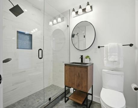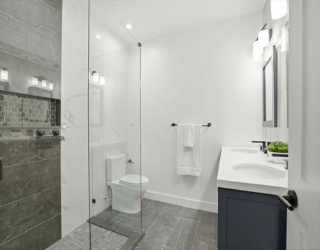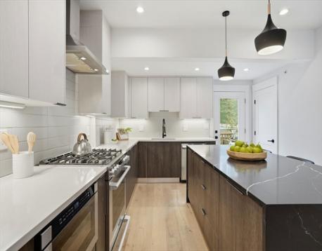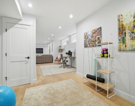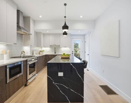 Duplex condo near Davis and Porter Squares offering thoughtful design, modern finishes, and exceptional natural light with south, east, and west exposures. Gut renovated in 2022, the home features Thermador appliances, quartz countertops, and a gas fireplace that anchors the open living and dining space. The kitchen opens to a private back deck, nicely secluded from the street and perfect for summer evenings, with a convenient half bath just off the kitchen. The main level includes two bedrooms, including the primary suite. The lower level offers a spacious family room, a third bedroom, a private office, and flexible space for an additional office, play area, or home gym. All three bedrooms feature en-suite bathrooms, with an additional full bath on the lower level for guests. Includes one exclusive parking space. Ideally located near the Red Line, the Somerville Community Path, neighborhood restaurants and cafés, nearby playgrounds, and the Kennedy and Brown schools.