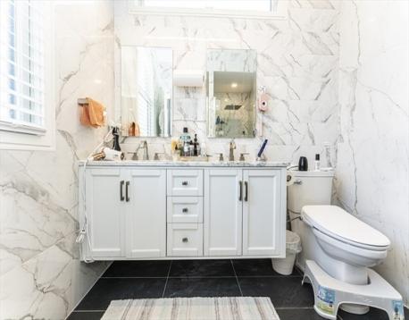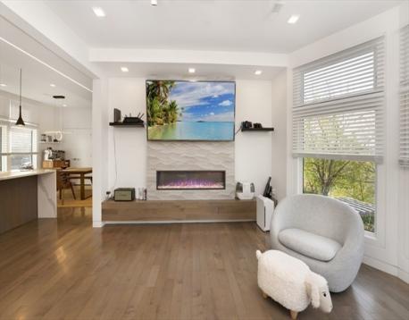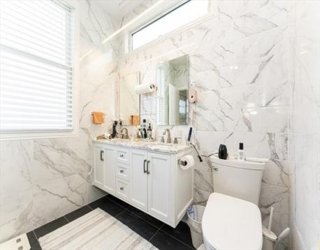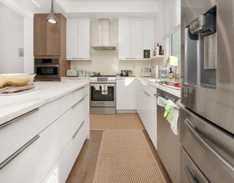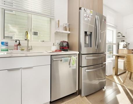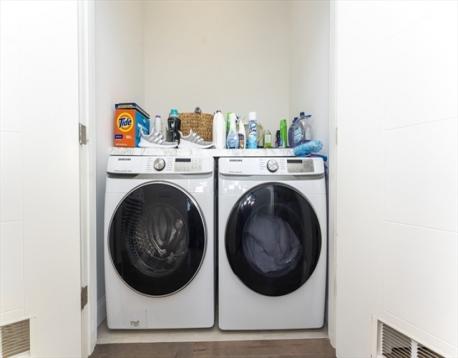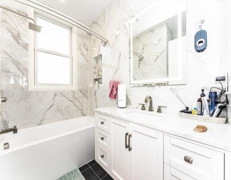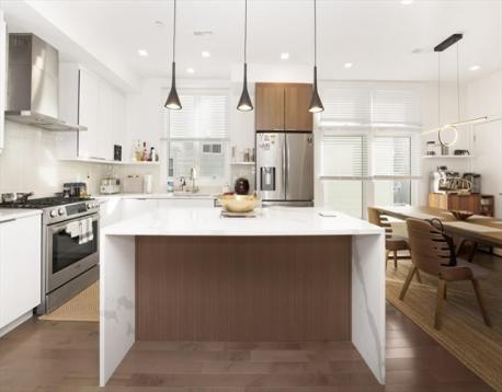 Luxury condo in a prime location with convenient access to I-93 and the Green Line Extension, and within walking distance to Assembly Row’s dining, shopping, and entertainment. Fully renovated in 2019, the unit is thoughtfully designed for modern living with hardwood floors and recessed lighting throughout. The open-concept layout seamlessly connects the kitchen and a bright living room, highlighted by an electric fireplace framed in granite. The kitchen features high-end Bosch appliances, quartz countertops, and ample pantry storage. Additional highlights include high ceilings, custom lighting fixtures, and large floor-to-ceiling windows that bring in abundant natural light and offer scenic neighborhood views. Two bedrooms include private decks overlooking the area. The unit offers two full bathrooms with tiled floors and walls for a sleek, contemporary finish. A finished private office is located on the basement level with separate access. One deeded parking space is included!