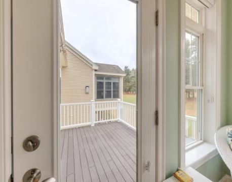 Nestled alongside the picturesque New Meadows Golf Club, this exquisite END UNIT TOWNHOUSE is ideally sited at the end of the cul de sac for the ultimate in PRIVACY and natural beauty. Gleaming HARDWOOD FLOORS, high ceilings, an OPEN FLOOR PLAN and large OVERSIZED WINDOWS make this unit light and bright, Enjoy the easy comfort and convenience with a FIRST FLOOR MAIN BEDROOM and luxurious bath. Relax in the sun-filled sunroom overlooking the scenic New Meadows Golf Course. Additional living spaces include a 2nd bedroom with an adjacent full bath, a versatile loft area and a generous FAMILY/BONUS room for multipurpose use. The unfinished walk-out lower level presents endless possibilities for future expansion or storage. Thoughtfully designed and impeccably maintained, this exceptional townhouse combines luxury, functionality and beautiful surroundings in an active adult community.