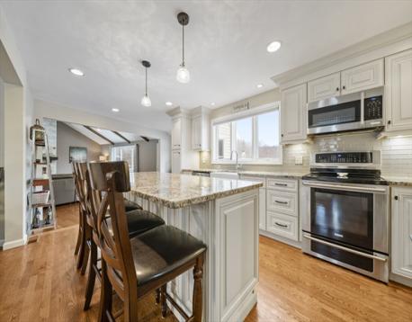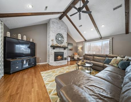 Situated on a 2 acre lot among farmland this stunning and meticulously updated, 4 bedroom, 2.5 bathroom expansive home has it all. An entertainers dream, this home has an open concept chefs kitchen with granite counters and oversized center island opening to dining area with wine bar, beverage fridge and additional cabinetry. The heart of this home is the great room with cathedral ceilings, floor to ceiling stone gas fire place, oversized windows and slider opening to deck. Formal living room with wood burning fireplace, updated half bath and laundry finish the first level. Upstairs there are 4 generously appointed bedrooms, a primary suite with California closet and bath with stone/tile fixtures, three additional bedrooms and another updated bath. Expansion potential in the walk out basement, opening to new patio and above ground pool. 2 car garage, all hardwood floors, tons of storage and updates throughout, this home is truly turn key. If you love to host, this gem is for you.