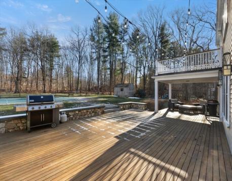 Surrounded by sprawling lawns & majestic trees, this spacious Colonial on 2+ acres is spectacular inside and out! 4 BRs, 2.5 baths, 3-car garage, stunning in-ground pool and expansive deck in a highly sought-after neighborhood! Impressive amenities are everywhere from hardwood flooring to a 1st floor office & front-to-back FP living room w/ a wall of built-ins. The chef’s kitchen is open to a fireplaced family room and a sitting room boasting a long window seat overlooking the spacious yard. Here, stainless appliances complement miles of granite-topped counters, center island & separate bar/baking area. 1st floor extras: mudroom and laundry! The 2nd floor features 4 well-appointed BRs including the primary suite which boasts a beautiful king-sized bed chamber w/ 3 closets, en suite bath w/ a walk-in shower and private deck. The LL features a bonus room big enough for a pool table, media center, etc. plus unfinished space for storage or more living area. This is indeed a heart stopper!