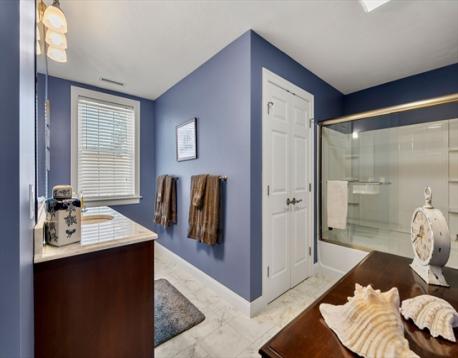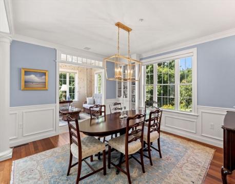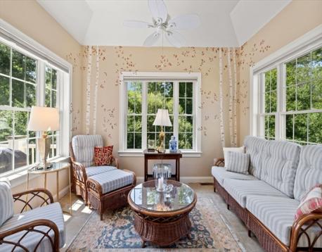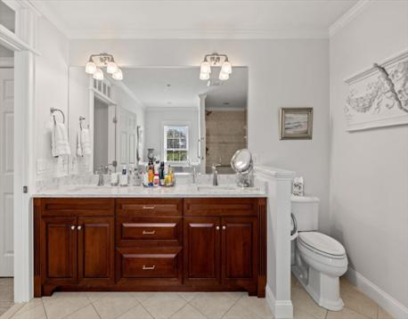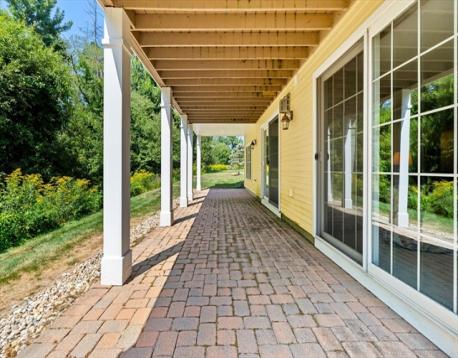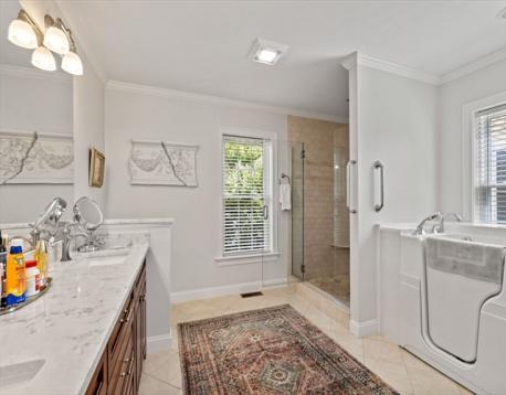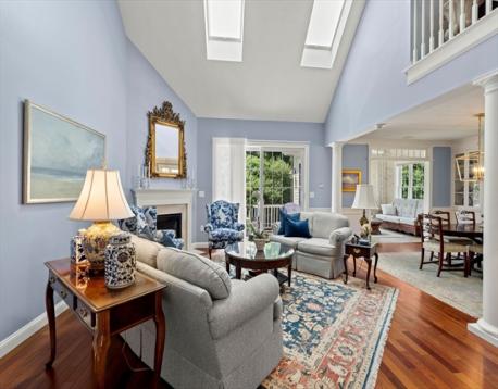 Experience luxury living in this beautiful 55+ English Commons townhome. A grand two-story foyer welcomes you into the elegant living room with gas fireplace and cathedral ceiling and large dining room with custom built-in china cabinet, perfect for entertaining. The gourmet kitchen features custom cabinets, granite counters, wall oven, pot filler, and breakfast nook with a coffered ceiling. Bring the outdoors in with vaulted sunroom and sunny deck. The 1st floor primary suite offers his & hers closets, deck access, and a spa-like bath with double sinks, tiled shower, and soaking tub. Cherry hardwood floors, crown molding, and refined finishes throughout. Upstairs offers a loft/home office and guest suite with private bath. The finished lower level adds an oversized family room with fireplace, wet bar, half bath, and patio. Upgrades include burglar alarm, Sonos speakers, and plantation shutters. Enjoy the clubhouse, inground pool & fitness center, close to shopping and highway access.