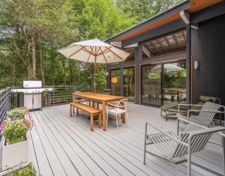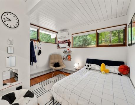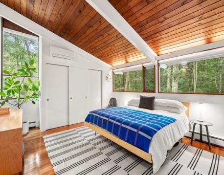 This one is truly unique! Welcome to this newly renovated Acorn Deck House, a stunning blend of mid-century and Scandinavian design tucked on a wooded 2-acre lot. Soaring California Redwood vaulted ceilings, dramatic lines, and expansive windows create a treehouse-like feel with natural light pouring into every room. The floor-to-ceiling wood-burning fireplace with a new stainless steel liner anchors the open living space. A spacious dining area flows into a sleek kitchen with a wet bar, Miele oven, and Bosch appliances. Custom sliders open to an oversized deck overlooking private, landscaped grounds and a fenced backyard. Modern updates include new garage doors, 2022 roof, and whole-home water filtration. The main level offers a primary bedroom, second bedroom, and full bath. The lower level features a large family room with gas fireplace, two additional bedrooms, full bath, and laundry. Minutes to Route 1, Bradley Palmer State Park, Ipswich River, and an easy commute to Boston.