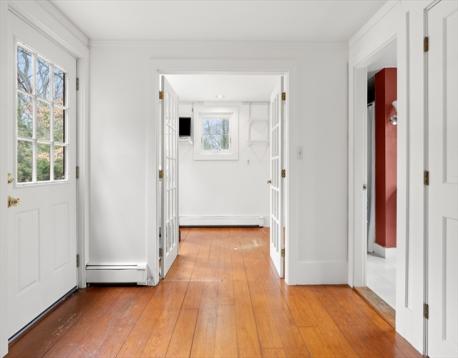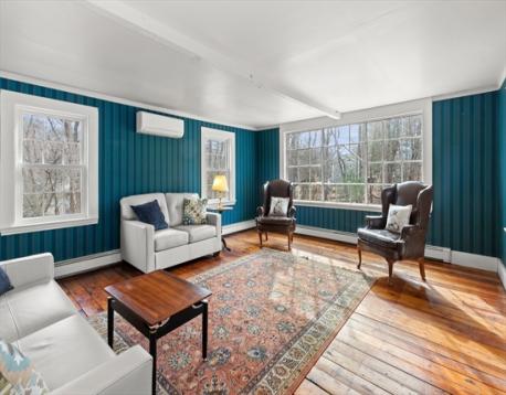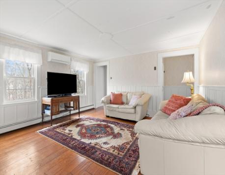 Location, charm & history await you in The Hiram L. Clay House – an outstanding 1911 antique set back from the road on 1+ acres adjacent to open space land. Stunning wood floors accent every room on the 1st floor in this 3-bedroom, 2 full bath home. Two staircases and a generous living room w/ an enormous picture window overlooking the grounds add character. The family room features built-ins and French doors lead to a cozy office or home gym. The heart of the home is the sprawling open kitchen-dining room w/ cherry cabinetry, center island, built-in desk and yet another stunning picture window. A full bath completes the 1st floor. Charm continues upstairs in a spacious primary bedroom w/ 3 closets. Another bedroom has built-ins and a double closet while angled ceilings are a highlight in the 3rd bedroom and loft area. A separate laundry room is adjacent to an oversized full bath w/ a walk-in shower. A carport with small attached barn is a bonus! Less than 1/2 mile to the town center!