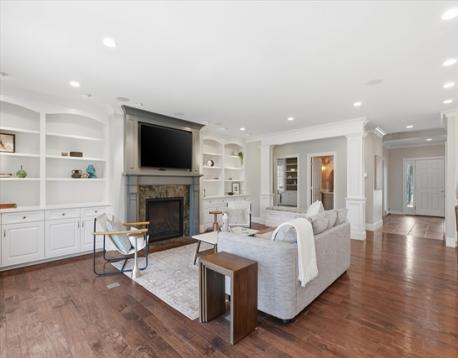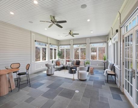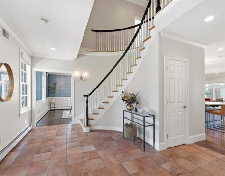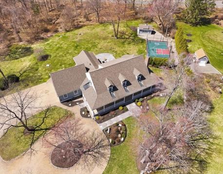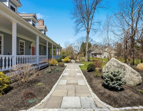 Welcome home to an exceptional Topsfield estate where timeless design meets modern luxury, a picturesque pea stone drive, framed by stone walls, split rail fence, sprawling front porch, circular drive, and 3 car garage. Inside, a dramatic two-story foyer with a curved staircase creates a stunning first impression. A chef’s kitchen features a marble island, Wolf six-burner range, double ovens, warming drawer, dual Sub Zero refrigeration, & fully equipped butler’s pantry. Relax in a family room with gas fireplace, custom built-ins and wet bar while a radiant heated sunroom opens to a bluestone terrace. A first-floor primary suite, formal dining room, cozy library, office, and laundry, add spaciousness. Three oversized en suite bedrooms, spacious game room, and open flex space create a second floor oasis. Professionally landscaped grounds, oversized shed, and lighted sport court create a true retreat. Radiant heat, built-in audio, and Lutron lighting complete this impressive 5600+ home.