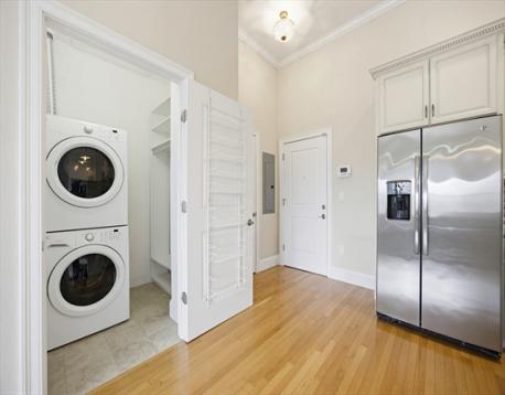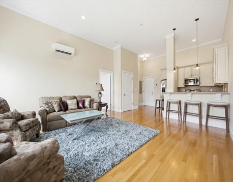 Stunning top floor 1BR at The Franklin Condominiums, a beautifully restored historic school building - completely renovated & converted to luxury condos in 2014. This sun-filled home features an open concept layout with soaring 11 ft ceilings, oversized windows, and hardwood floors throughout. The elegant kitchen offers granite countertops, tiled backsplash, S.S appliances, abundant cabinetry, and peninsula seating for everyday living or entertaining. The spacious living area is filled with natural light and showcases the character and scale that make this building so unique. The oversized bedroom offers generous closet space and a beautifully appointed en-suite bath w/ double vanity and tub/shower combination. Mitsubishi mini-splits provide efficient heating & cooling. Includes large storage unit, beautifully maintained common areas, community patio, and 1 deeded garage parking space. Conveniently located just 1 mile to the Wakefield MBTA commuter rail and scenic Lake Quannapowitt.