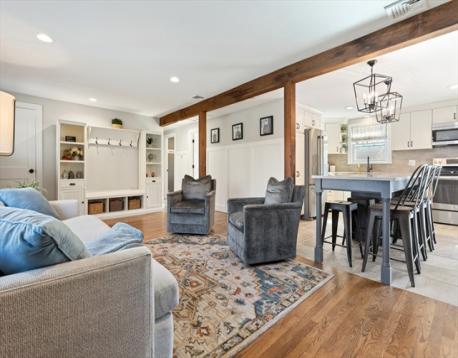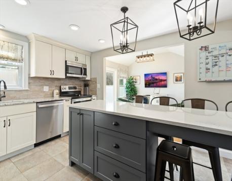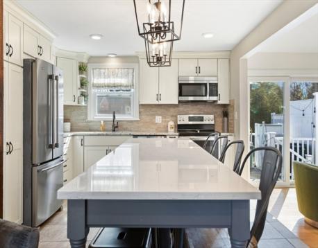 This beautifully updated 3-bedroom, 1.5 bath ranch isn't just move-in ready-it's live your best life ready. Step into a gorgeous open-concept kitchen anchored by an oversized island perfect for breakfast gatherings, and those impromptu conversations that happen while you're prepping dinner. The seamless flow into the fireplaced living room and dining room creates the kind of space where everyone naturally gravitates-whether you're entertaining or just keeping an eye on the game while you cook. The main level delivers with 3 spacious bedrooms and an updated full bath, but there's more. A finished lower level offers additional living space and half bath-ideal for a media room, home gym, or whatever your lifestyle demands. Plus, the 1-car attached garage keeps you out of the elements and adds valuable storage. A generous composite deck overlooks a fully fenced yard complete with pool, sports court, and green space perfect for outdoor activities. Don't miss the chance to call this home!