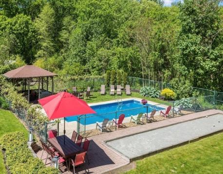 Move in ready just in time for Summer! This exceptionally maintained home sits on a nearly 1/2 acre lot on a quiet cul-de-sac, offering privacy and convenience with easy access to downtown Wakefield & I-95/128. The main level features 3 bds with double closets, master bath w/ steam, washer/dryer and hardwood floors. The large living room leads into custom kitchen & dining area featuring double oven, breakfast bar, granite countertops and solid wood cabinetry. An all-season sunroom w/ skylights and cathedral ceilings connects to a private upper deck with hot tub. The lower level offers multi-generational living complete with a kitchenette, full bath, dining area, spacious bonus room with fireplace, new custom cedar closet and direct access to the newly added patio. Outdoors is an in-ground heated, saltwater pool, w/ gazebo, bocce ball court and large fenced-in yard surrounded by mature trees and landscaping. A beautiful home ideal for easy living and entertaining!