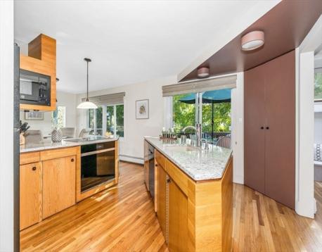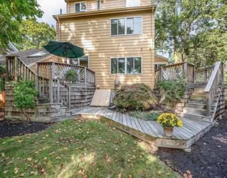 This upper West Side Colonial has been impeccably maintained by long time owners. With a contemporary flair, it features a flexible floor plan that will accommodate a multitude of different living situations. First floor formal livingroom with gas fireplace, modern granite counter kitchen with custom cabinetry, Wolf cooking, open to dining area. Also a first floor home office w Andersen slider to deck. Hardwood flooring. Second floor features a large main bedroom with en suite bathroom, hardwood floors, multiple closets and an adjacent den/ sitting area. Third floor features two more bedrooms and a full bath. Central A/C and central Vac.Full basement with separate heating zone( unfinished). One car attached garage with direct access to house. Two decks overlooking gorgeous yard with full irrigation. Conveniently located near commuter rail to Boston, major highways (Rtes 93 and 95) Come and take a look at open houses Saturday and Sunday 11:30-1:00