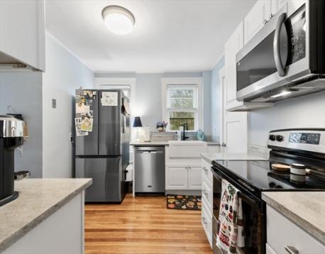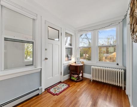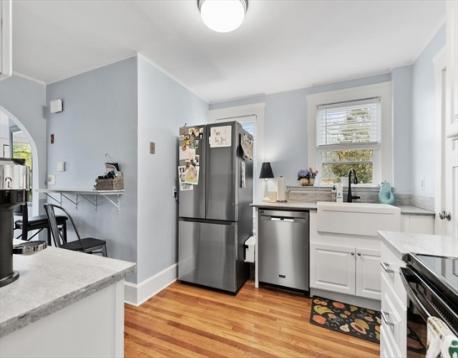 Beautifully sited on a landscaped knoll in a popular residential location. Turnkey 2 fam features a 4-room 1st floor, 2 bedroom unit and a 2nd floor 3 room, 1 bedroom unit. Well updated 1st floor apartment includes a newer 3/4 bath, kitchen with corian counters, breakfast bar and SS appliances. The flexible use, oversized living room features hardwood floors, lots of glass and overlooks the backyard. The 1st floor unit also has a garage under, basement and laundry access with additional storage. Exclusive access to the top floor apartment is through a large open front porch. This kitchen features newer stainless-steel appliances, (refrigerator, DW and stove). There is also a newer tiled full bath and hardwood floors. The large lot has a pretty 12X10 detached screen house nestled in the rear. Each unit has an individual laundry hook ups, dedicated use driveways separate oil burners and electric. All this in close proximity to highways, town, activities and recreational use at Lake Q.