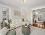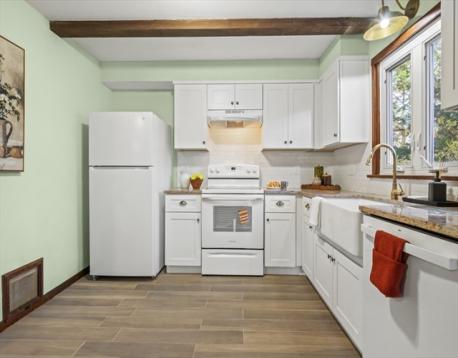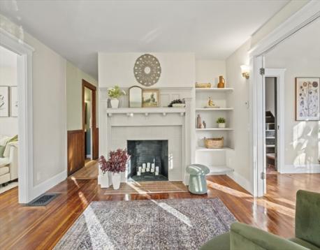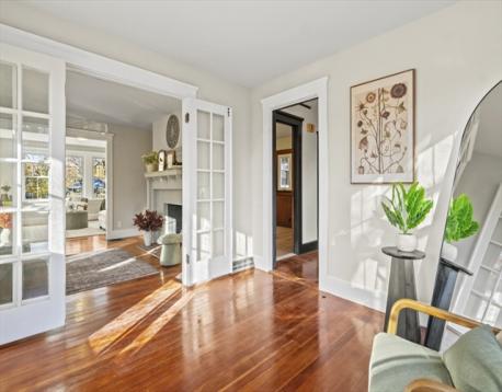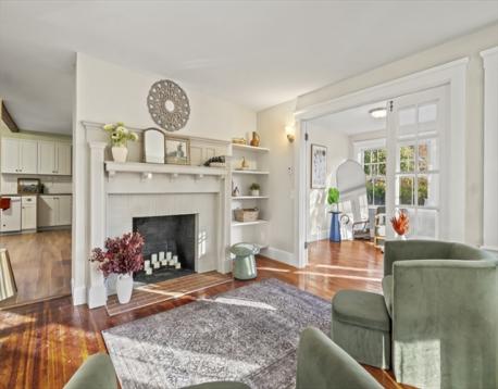 Filled with character, this sun-filled home welcomes you with a spacious entryway and double French doors leading into a warm and inviting living room featuring hardwood floors and a cozy fireplace. Additional French doors open to both a cozy family room and a charming sunroom, offering wonderful flexibility and flow. The remodeled kitchen boasts white shaker-style cabinets, a farmhouse sink, and direct access to the enclosed porch, with an adjacent dining area perfect for gatherings. A full bath completes the first floor.Upstairs, you'll find three bedrooms with hardwood floors and a full bath, along with walk-up attic access—ideal for easy storage or potential future expansion. Enjoy outdoor living on the patio area, plus a detached garage for added convenience. Nothing left to do but move in and make new memories this holiday season!