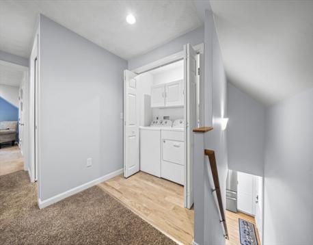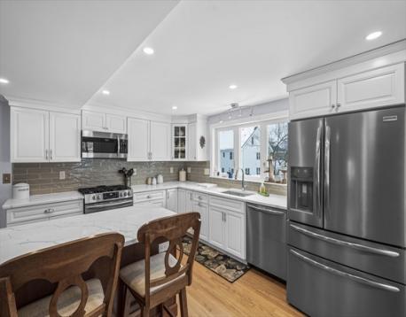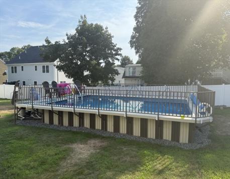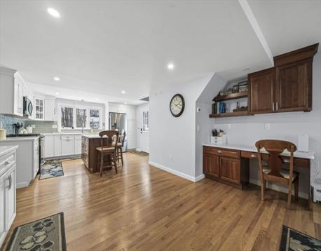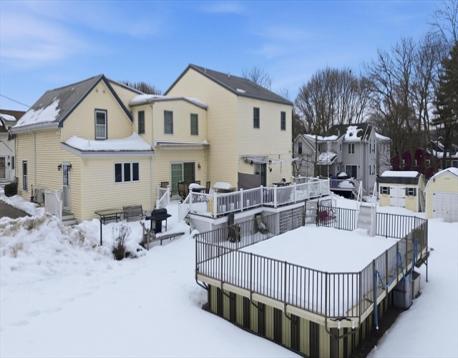 Welcome to Wakefield! This move-in ready townhouse offers comfort, style, and convenience. The first floor features an open-concept dining area flowing into a modern kitchen with updated appliances, quartz countertops, wet bar, and hardwood floors. The living room includes sliders leading to a private deck overlooking the above-ground pool — perfect for relaxing or entertaining. A generously sized first-floor bedroom and updated full tiled bath complete this level. Upstairs offers two spacious bedrooms, convenient laundry, ample closet space, and a full bath with separate shower and tub, double vanity sinks, and tile flooring. Ample parking on a dead-end street adds to the appeal. Conveniently located near downtown, shopping, restaurants, and major highways. A must see!