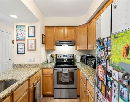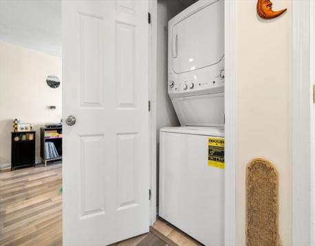 Welcome to this lovely 2-bedroom, 1-bath condo in the heart of vibrant Wakefield. This rear-facing, upper-level corner unit offers privacy, peaceful views of Nasella Playground, and abundant natural light. The open concept layout is ideal for everyday living and entertaining. The kitchen features stainless steel appliances, granite countertops, maple cabinetry, and a breakfast bar that flows into the living area with access to a private balcony. Updated flooring adds a modern touch. The spacious primary bedroom and second bedroom offer flexibility for guests or a home office. A full bath, in-unit laundry, central air, extra storage, and guest parking add convenience. Condo fee includes heat and water. Close to downtown, shops, dining, commuter rail, highways, and Lake Quannapowitt! Showings begin 4/25