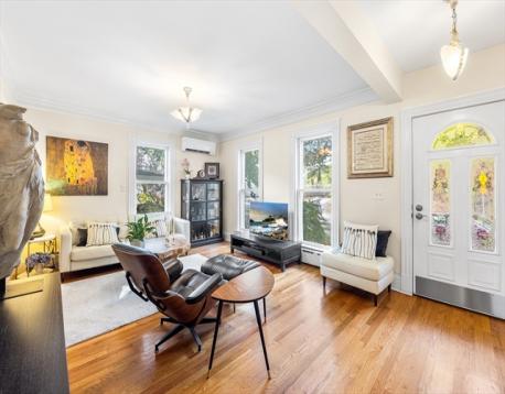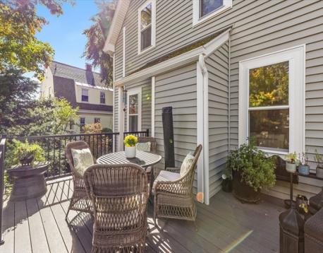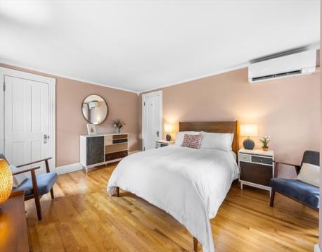 This 3-bedroom home offers modern comfort and design with classic New England charm! The bright living room showcases triple crown molding and custom lighting. The gourmet kitchen has a custom island mahogany-stained maple top w/ seating, LG professional signature appliances, Marvel wine fridge, designer tile backsplash & custom baking station w/ mixer lift cabinet. The dining room includes linen storage & custom lightings. 1st floor bath offers a soaking tub, wood paneling & gold finishes. 2nd floor full bath includes a rain shower, handheld shower, built-in shelf & custom designer tile silhouette. Primary bedroom has a double closet plus a single closet. 2nd bedroom has custom vertical curtain panels & a built-in desk designed for the space. Systems include a new Lochinvar furnace, 200 AMP electrical service, and an oversized hot water tank. The charm continues outside with a paved garden patio with fountain & shed w/ cupola. Walking distance to commuter rail & downtown Wakefield.