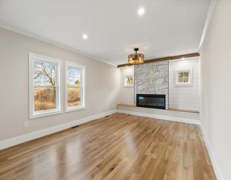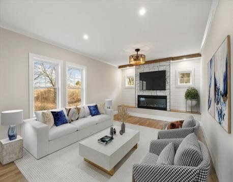 Located in Wakefield, this spacious new construction 4 bed, 3.5 bath home offers exceptional finishes, thoughtful design, and great space to live and entertain. The gourmet kitchen features Café appliances, including a 6-burner gas range with griddle, pot filler, and a wet bar ideal for hosting. The first floor offers a bright open layout with a large family room and electric fireplace, plus a dining room and half bath. Upstairs, the primary suite is a true retreat with an elegant bath and an oversized walk-in closet with custom shelving. Two additional generous bedrooms, a full bath, and a laundry room with cabinetry complete the second level. The third floor adds flexibility with a sitting area, private 4th bedroom, and 3/4 bath. A massive unfinished basement offers future expansion potential. Central A/C, propane heat, 2-car garage, town water/sewer. Close to shopping and major routes.