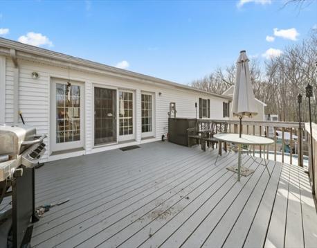 Tucked away on a quiet cul-de-sac with easy highway access and close to the shops and restaurants at Market Street, this spacious home offers privacy and flexibility for a growing or multi-generational family. A 2003 addition greatly expanded the living space. The upper level features a bright, open-concept layout ideal for everyday living and entertaining. The kitchen with custom built-ins flows into a large dining area and fireplaced living room with vaulted ceiling and slider to the deck for easy indoor-outdoor gatherings by the above-ground pool. Four generous bedrooms are on this level, including a large primary suite with a four-piece en-suite bath, plus another full bath. The lower level offers excellent versatility with a fireplace family room, expansive great room for recreation or extended living, laundry with half bath, and direct access to the two-car garage. Set on a private lot near shopping, dining, and major routes, this home offers incredible potential.