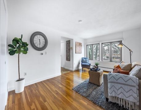 Unpack, move in, relax at this affordable condo at Woodbriar Place located across from the Wakefield commuter rail station a short trip to North Station or transfer to the Orange Line in Malden. This unit with an impressive 89 Walk Score, is close to everything Wakefield has to offer: seconds to the restaurants and stores on Tuttle St, minutes to the activities in the vibrant downtown and oh so close to Lake Quannapowitt with all of its recreational opportunities including boating, fishing, sports and the award winning farmer's market! This unit features gleaming hardwood floors, an eat-in kitchen with all new SS appliances, disposal, plumbing shutoffs and under-mounted lights. Low condo fee includes heat, water, maintenance, master insurance, snow removal with laundry in the building. There's nothing to do here but move in and start to enjoy carefree living in this perfect commuting location with the world at your doorstep. Building has gas heat and hot water systems. Easy to show!