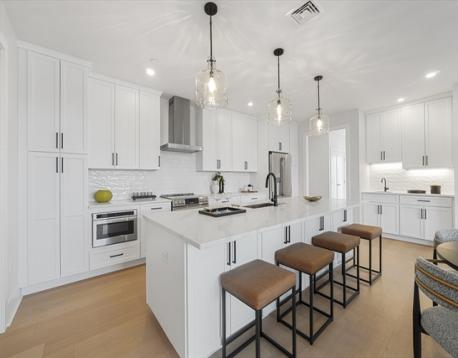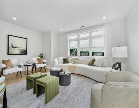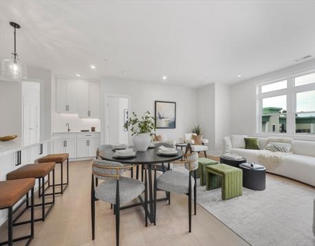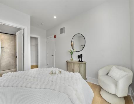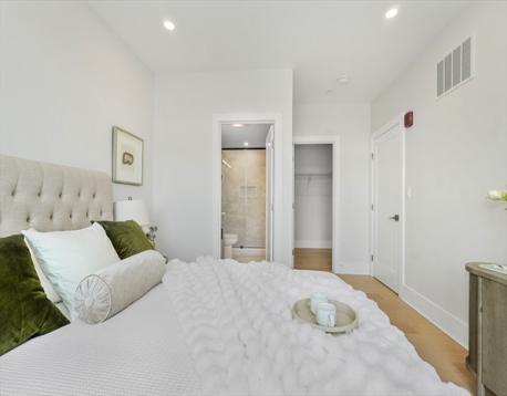 Experience refined living at the Wrenly Residences - Where Luxury Meets Lifestyle. This elegant 2-bedroom, 2-bathroom penthouse condo spans over 1,200 square feet all on one level, featuring engineered hardwood floors and a designer kitchen with top-of-the-line appliances. The spacious primary suite includes ample closet space and a luxurious tiled en-suite bathroom. The second bedroom offers versatility for guests or a home office. Enjoy year-round comfort with central heating and air conditioning, and the convenience of an in-unit washer and dryer. Amenities include two elevators, off-street parking, an attached garage, a well-equipped gym, and both common and private outdoor spaces. Pet-friendly policies ensure your furry companions are welcome. Discover the perfect blend of elegance and modern convenience. Schedule your private showing today!