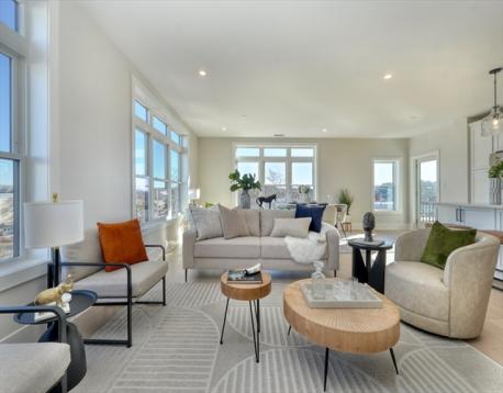 Experience refined living at the Wrenly Residences - Where Luxury Meets Lifestyle. This elegant 2-bedroom, 2-bathroom penthouse condo spans over almost 1,200 square feet all on one level, featuring engineered hardwood floors and a designer kitchen with top-of-the-line appliances. The spacious primary suite includes ample closet space and a luxurious tiled en-suite bathroom. The second bedroom offers versatility for guests or a home office. Enjoy year-round comfort with central heating and air conditioning, and the convenience of an in-unit washer and dryer. Amenities include two elevators, off-street parking, an attached garage, a well-equipped gym, and both common and private outdoor spaces. Pet-friendly policies ensure your furry companions are welcome. Discover the perfect blend of elegance and modern convenience. Schedule your private showing today! Ask about the 1% buy-down incentive or closing cost credit!