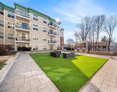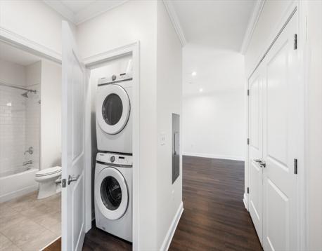 Welcome to The Foundry! This stunning 2bedroom, 2bath residence offers over 1,000 sq ft of single-level living and has been meticulously maintained. Conveniently located just off the elevator, this home combines high-end finishes, thoughtful design, and everyday convenience. The designer kitchen features granite countertops, ss appliances, custom cabinetry, and a breakfast bar, opening to a bright, open-concept living and dining area ideal for entertaining or relaxing. Enjoy a private balcony that creates a seamless indoor-outdoor connection. The spacious primary suite includes its own private balcony and a beautifully finished en-suite bath, while the versatile 2nd bedroom is perfect for guests or a home office. Additional highlights include in-unit laundry, central A/C and heat, and 2 parking spaces, including a spot in the heated garage. Residents enjoy a landscaped outdoor terrace with grills and a community room for work or gatherings. Close to commuter rail this home has it all.