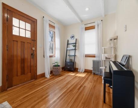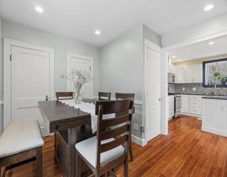 Tucked at the end of a quiet dead-end street, this charming home delivers both privacy and thoughtful updates that eliminate guesswork for its next owner. An updated kitchen anchors the main level with stainless steel appliances and granite countertops—functional, polished, and ready for daily use. Hardwood flooring and recessed lighting flow throughout, creating a cohesive interior that feels both classic and current. The partially finished basement offers flexible space for storage, hobbies, or future expansion, while the large backyard provides genuine outdoor living with a shed for storage. System updates include a roof installed in 2019 and a hot water tank replaced in 2020—meaningful investments that speak to long-term stewardship. The newest addition, a freshly completed mudroom with new windows added in 2024, adds both character and utility at the entry. This is a home that's been cared for consistently, updated strategically, and positioned perfectly.