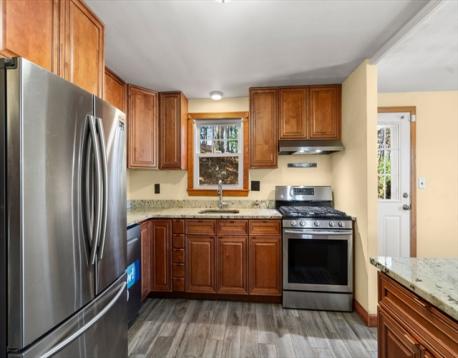 Nestled in a quiet cul-de-sac on the Belmont line, this fully renovated 5 bed 1.5 bath expanded Cape abuts Waltham's newly developed universal playground! Major updates include 200 amp electric, 2024 Navien heating system, 2017 Harvey windows, 2015 architectural shingled roof, 2025 water main, vinyl siding and Mass Save insulation! First floor features 2018 granite kitchen with breakfast bar, vented gas range, stainless steel appliances, large fireplaced living room, 2018 full bath, open dining room, two bedrooms and refinished hardwood floors. Upstairs are two bedrooms including an 18x16 main bedroom with vaulted exposed beam ceiling, half bath and eave storage. Lower level features an office/bedroom, partially finished room and 2021 washer and gas dryer. Enjoy winter views of the Boston skyline, private backyard with deck and attached 25x13 garage with brand new door opener. Easy access to Waverley Commuter Rail and buses, Storrow/Memorial Drive, Harvard Square and nearby dog park!