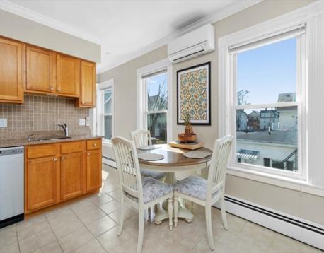 This beautifully updated 3-bedroom, 1-bath condo with private entrance offers the space, style, and convenience you’ve been waiting for. Fully renovated in 2008, the home features an inviting eat-in kitchen with stainless steel appliances, granite countertops, and a striking tiled backsplash that opens seamlessly to a sun-filled living room—perfect for everyday living and entertaining. The main level includes the primary bedroom and a modern bath, while the upper floor offers two additional bedrooms with hardwood floors and custom closet systems in two of them. Enjoy year-round comfort with the 3-zone mini-split system providing efficient cooling and supplemental heat. Additional perks include two parking spaces (ONE GARAGE), basement storage, and a partially fenced common yard ideal for summer relaxation. With a low condo fee, pet-friendly policies, and easy access to Moody Street dining, the commuter rail, and major highways, this home checks every box. Don't miss this one!