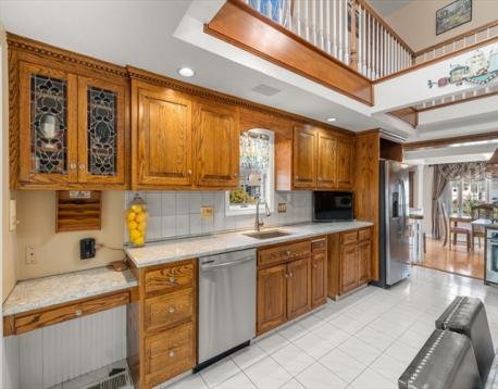 Victorian style colonial on desirable street close to Bentley University with inground pool perfect for summer entertaining! This 5 bedroom home offers something for everyone. The first floor welcomes you into a living room with fireplace, dining room, eat in kitchen with exposed beams and atrium ceiling. There is access to the yard and patio. There are also 2 bedrooms and two full baths on this floor. The upper level has a flexible floor plan with 3 bedrooms plus a den with plenty of windows and natural light along with another full bath. The lower level has a family room with a wet bar for entertaining and an office and half bath. There is a huge detached 2 car garage with living area above that has both heat and air conditioning and a full bath so a great space for guests! There is a workshop below the garage so perfect for a contractor or gym! You will love the flexibility of this home and the convenience of the location. Roof approx. 4 years young roof w/ solar panels.
