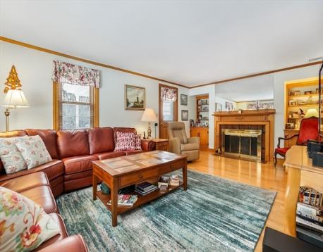 Rare and very well cared for ranch in Piety Corner neighborhood. Three bedrooms....including generous master with master bath. Beautiful hardwood floors throughout. Formal, oversized living room with gas fired fireplace. Formal dining room with lovely built-ins. Family sized eat-in kitchen. First floor laundry and office. Two car garage with easy direct access to the house. Energy efficient gas fired heating system and central air conditioning. Ample finished basement space with fireplace and full bath. This space affords endless possibilities for storage, extra living space and possible ADU. New roof in 2025. Irrigation system. All situated on a large, level corner lot! Prime convenient location with easy access to highways, transportation, schools and shopping. A wonderful home!