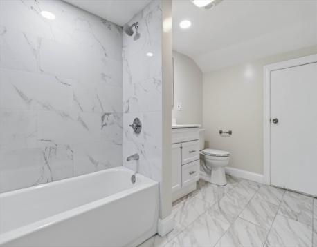 Beautifully renovated home on a double lot in a desirable Waltham neighborhood. This sun-filled property features a brand-new kitchen, hardwood flooring, new windows, roof, siding, and a newly built deck—perfect for indoor-outdoor living. The first floor offers two bedrooms, providing flexible living and convenient single-level living options. Upstairs offers additional bedrooms for family, guests, or home office use. Major updates include a high-efficiency Fujitsu mini split system with 6-zone heating and cooling. Additional improvements include a new driveway to the garage, updated fencing, and a professionally built retaining wall.The basement has been cleaned and offers future finishing potential, with one room already equipped with electric baseboard heat. Public record square footage includes previously finished basement space; basement is currently unfinished post-renovation.Conveniently located near Pizzi Farm, Hardy Pond, and Lazazzero Playground. Some photos virtually staged.