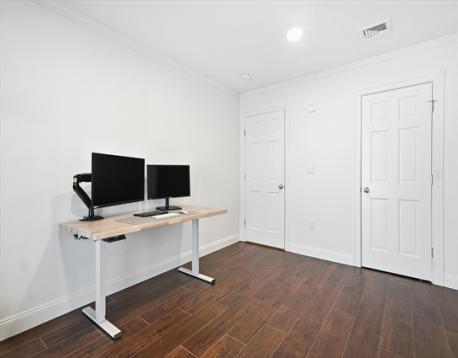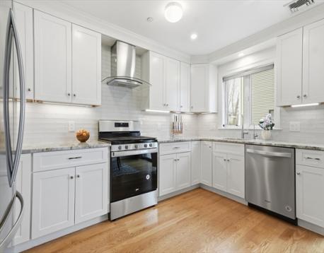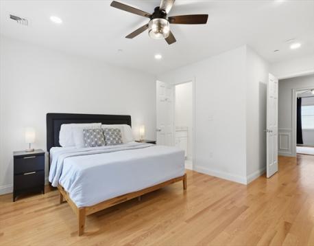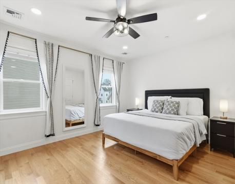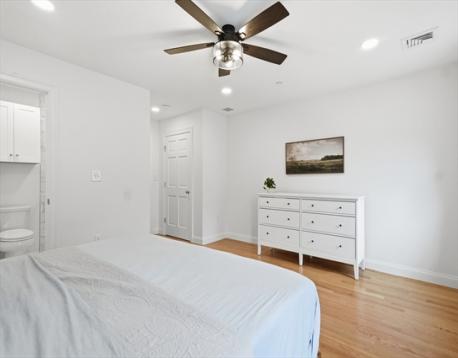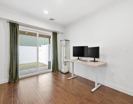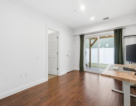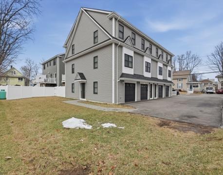 Bold and modern, this 2021-built townhouse offers the comfort of single family living with the effortless convenience of a condo. Sunlight pours through oversized sliders and expansive windows, highlighting wide-plank hardwoods and a clean, contemporary aesthetic throughout. The open-concept kitchen anchors the main level with sleek quartz counters, upgraded cabinetry and stainless appliances. Outside, a private deck and fenced patio create an effortless outdoor escape. Each bedroom features its own ensuite bath, offering privacy and flexibility for guests. The primary suite feels like a retreat, while the lower level suite with walk-in closet and patio access adds versatility. Attached garage parking, smart home features, in-unit laundry and shared outdoor space complete this polished, move-in ready home. Just 1 block from the shops and restaurants of Moody Street, this is an exceptional commuter location with easy access to MBTA buses/commuter rail & major highways.