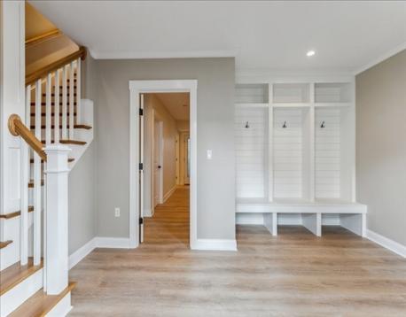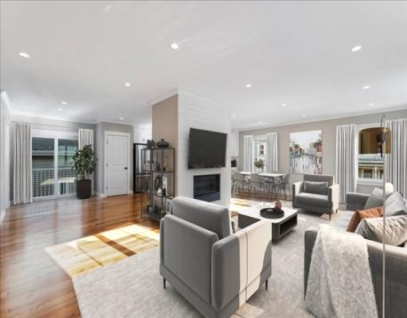 Elegantly crafted townhouse in desirable downtown location! The main level welcomes you with a convenient mudroom featuring custom cabinetry, ensuring a clutter free & organized entry. Adjacent to the mudroom, a direct entry garage & first floor AuPair/Guest suite w/walk-in closet & full bath provides guests privacy & comfort. The second level offers high ceilings, recessed lighting & an open concept design which flawlessly combines the kitchen, living & dining areas. The kitchen blends beauty & functionality w/a 9-ft island, quartz counters, SS appliances & a spacious pantry. Sun filled living/dining room w/cozy gas fireplace offers a relaxing & inviting space ideal for entertaining or family gatherings. Primary bedroom, walk-in closet, en-suite w/double vanity, walk-in tiled shower, two additional bedrooms, full bath & laundry complete the upper level. Convenient to major routes, schools, public transportation and numerous restaurant and shopping venues.