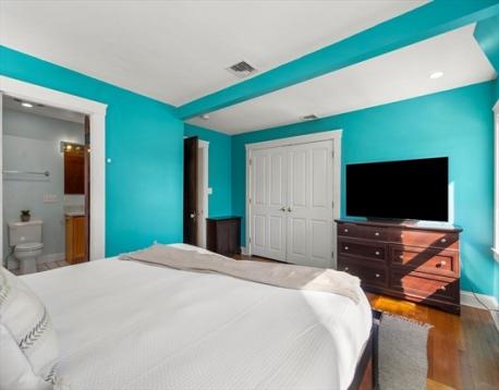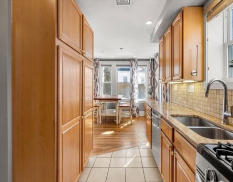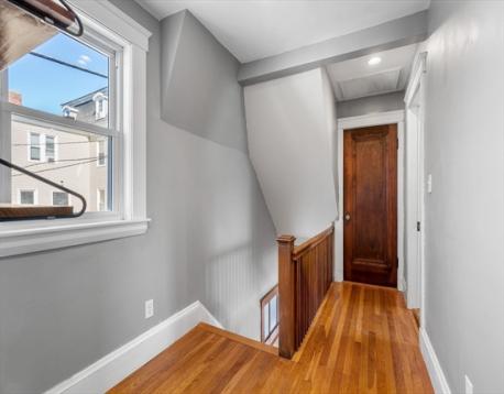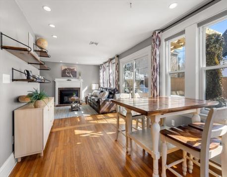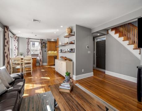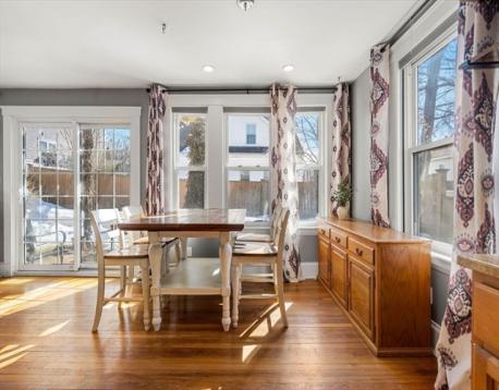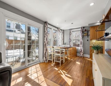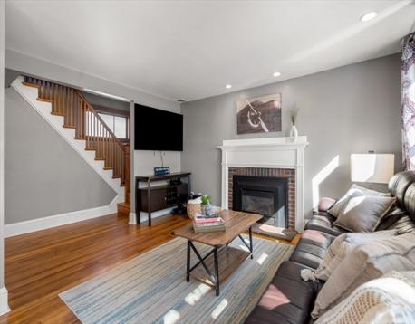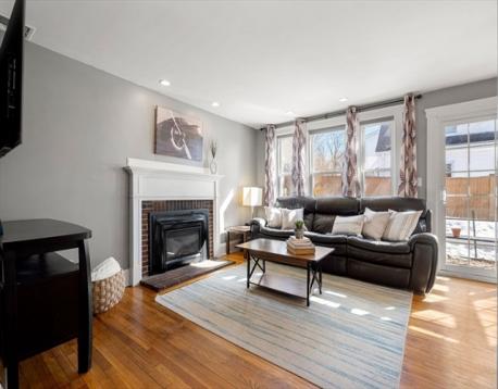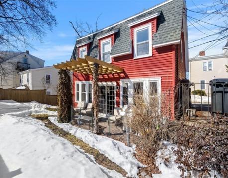 Charming Gambrel Colonial in a Prime Commuter Location! Set on a private side street in a desirable central location, this historic home blends timeless character w/ modern updates. Gleaming hardwood floors, rich gumwood trim & abundant natural light create a warm, inviting feel throughout. The kitchen offers granite countertops, stainless steel appliances, gas cooking & ample cabinet space. The living room features a cozy gas fireplace & flows into the open dining area-perfect for everyday living & entertaining. Upstairs includes a spacious primary bedroom w/ private bath access & a secondary bedroom ideal for guests, office, or nursery. Walk-up attic & full basement provide excellent storage. Step outside through French doors to an inviting patio & fenced yard. Additional highlights include central A/C, four-car parking & select smart-home features such as Ring security cameras & an Ecobee smart thermostat. Surprisingly spacious - truly a commuter’s gem! Offers due 3/9 at 8:00pm