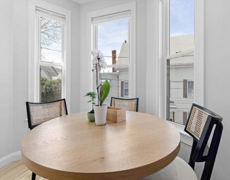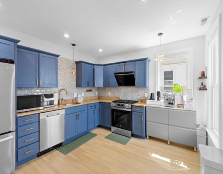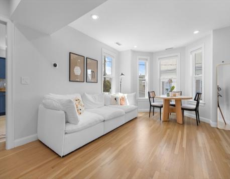 Bright & beautifully updated 3-bed, 2-bath duplex condo on the coveted Newton line! Thoughtfully renovated in 2006 and fully refreshed again in 2024, this move-in ready home shines with refinished hardwood floors, recessed lighting, and fresh paint throughout. Sun-filled living/dining area flows into a renovated kitchen featuring new stainless appliances, updated cabinetry, and modern fixtures. First-floor bedroom and full bath offer added flexibility. Upstairs: spacious primary suite, third bedroom, and a fully renovated bath with luxury finishes. Major upgrades include a new furnace (2025), new washer/dryer, updated stairway, and stylish window treatments. In-unit laundry, ample basement storage, and 3 off-street parking spaces included. Steps to Moody Street dining, shops, commuter rail, and highway access — this one checks every box!
