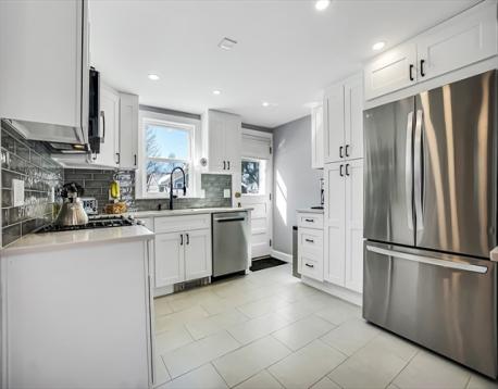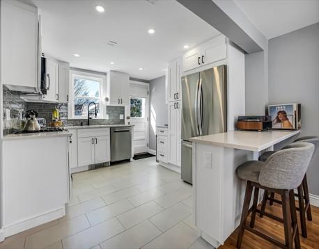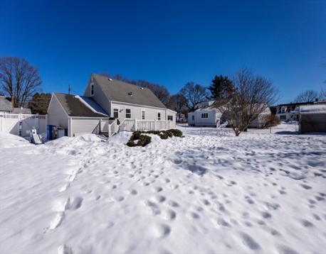 Located in the highly desirable Warrendale section of Waltham. A charming and updated 3-bedroom, bright and sunny, Cape-Cod Style Home. Fireplaced living room. Hardwood floors. Gas heat. Modern Kitchen and bath. Custom blinds. Vinyl siding. Garage. Full unfinished basement. Recessed lighting. Entertainment sized deck just off the kitchen.....overlooking large, fenced, rear yard. The kitchen, totally renovated in 2025 offers stainless steel appliances, beautiful quartz counter tops and peninsula, updated cabinets, new sink, faucet and dishwasher. A great house and yard with many possibilities. Easy access to schools, park and transportation.