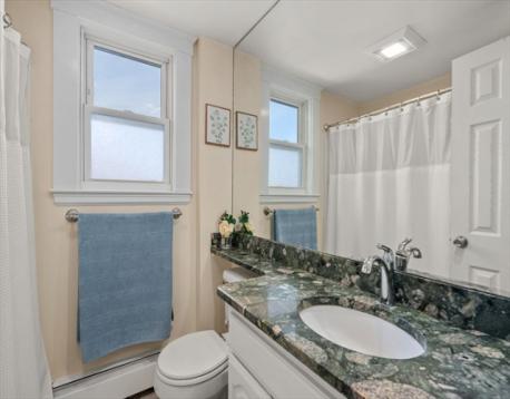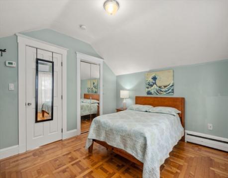 Welcome to this charming Gambrel Dutch style home in Waltham’s Lakeview neighborhood. A heated sunroom at the front of the home adds a bright area for working from home or everyday needs before entering the main living level. The first floor features hardwood floors, a living room, dining area and an updated kitchen with white cabinets, granite countertops, stone finishes and stainless steel appliances. A first floor bedroom and half bath complete this level. The second floor offers two additional bedrooms with hardwood floors and a full bath. The basement includes finished and unfinished space, a laundry area and a pantry storage.Mini splits are included, new furnace and hot water heater replaced in Jan 2025. Outside offers private yard space along with parking for two cars in the driveway. Convenient access to Route 128, Mass Pike, local shops, parks and public transportation. Come see this gem before it’s gone!