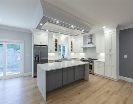 Welcome to Waltham! Built by one of the cities most reputable builders. This beautiful oversized colonial stands tall with 4 gabled roof, farmers porch with recessed lighting, grand mason wall work, professional landscaping, stone block stairs. The kitchen has 9' ceilings, 48" cabinets, 7" crown molding, waterfall island, quartz countertops, 48" chefs stove, 6 burners, pancake flat iron, pendent lighting, recessed lighting, custom soffit, pantry open floor plan. Living room has a a gas fireplace and molding throughout, 5" baseboards, dining area, oversized back patio in a large fenced in lot. Office can double as a 4th bedroom, finished basement can be used as a gym, full bathroom in basement with waterfall mosiac. Masterbedroom has his and her closets, walk in closet, full bathroom wiith large stand up shower and seating bench, 4 shower heads including a rain fall and steamer. Double vanity both bathrooms. Attic is grand finished with cathedral ceilings and color recessed lighting!