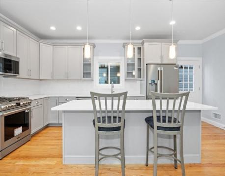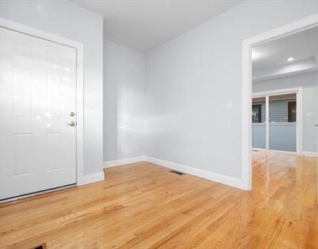 Immerse yourself in luxury with this stunning new construction townhouse on the coveted Newton Line, showcasing top-quality finishes and thoughtful design. The 1st floor offers a welcoming entry foyer with cubbies and a flexible guest suite or den with private tiled bath and sliders to a rear deck, perfect for guests or a cozy retreat. The sun-filled living room flows into the dining area and chef’s kitchen with quartz counters, island bar, stainless steel appliances, and pantry closet. Soaring ceilings, gleaming hardwood floors, crown moldings, and triple pane sound-proof windows enhance beauty and efficiency throughout. Upstairs, the primary suite boasts a stylish tiled bath with dual vanity. A finished basement family room provides extra space, while a private patio adds exclusivity. Additional highlights include a garage plus convenient access to Moody Street restaurants, shops, parks, public transit, and commuter rail.