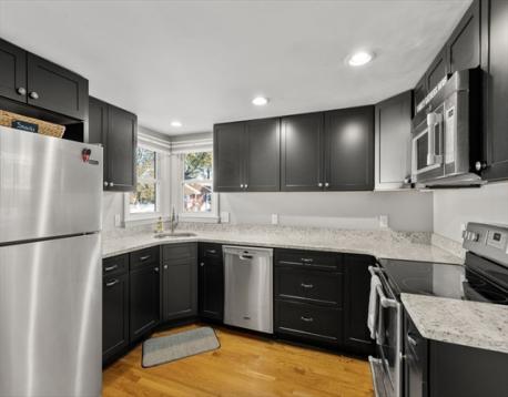 Your Dream Home Awaits! Step into this sun-filled 3-bedroom ranch nestled in a charming neighborhood. From the moment you enter, you'll be greeted by gleaming hardwood floors that span the entire first floor, adding warmth and elegance to every room. The newly renovated kitchen is a chef’s delight, featuring granite countertops, stainless steel appliances, and plenty of space to create culinary masterpieces. Adjacent to the kitchen, the oversized dining room boasts a vaulted ceiling and a large bay window, perfect for hosting memorable dinners or enjoying morning sunlight. Downstairs, the spacious family room offers a cozy wood-burning stove, a built-in bar, and a half bath—an ideal setting for entertaining guests or relaxing with loved ones. Outside, the generous yard is beautifully landscaped with perennials, includes a shed for extra storage, and has ample space for a fire pit and lawn furniture—your private oasis for outdoor enjoyment. A commuters delight!