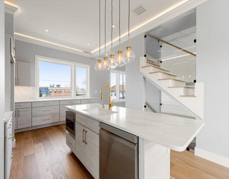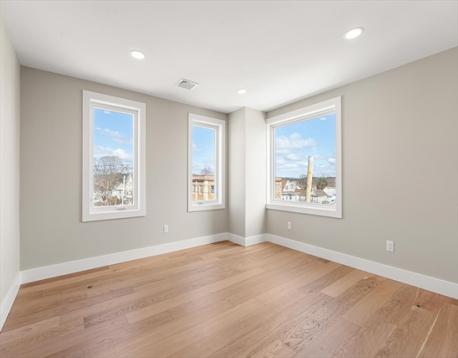 ONLY TWO TOWNHOMES REMAINING! EXCEPTIONAL NEW CONSTRUCTION! Spanning four finished levels, this seldom found FIRST FLOOR BEDROOM W/FULL BATH is perfect. This stunning contemporary residence features 4 bedrooms, 3.5 baths, and a 1-car garage with a flexible floor plan. The main level boasts an open floor plan, including an ultra-chef’s kitchen with premium finishes, a great room with LED soffit lighting, a linear gas fireplace, and a beautiful glass staircase with lit treads. This level also includes a dining and living area, a powder room, and a convenient laundry room. Above, you’ll find three spacious bedrooms, including a luxurious primary suite with mosaic tile and a custom vanity. Walls of glass showcasing breathtaking views of the Boston skyline and soaring ceilings throughout with extraordinary finish work makes this townhome truly incomparable in Waltham! This location offers easy access to Moody Street shops and public trans.