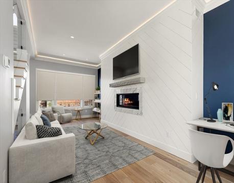NEWTON @ HIGH! EXCEPTIONAL NEW CONSTRUCTION! ONLY TWO TOWNHOMES REMAINING! Spanning four finished levels, this seldom found FIRST FLOOR BEDROOM W/FULL BATH is perfect. This stunning contemporary residence features 4 bedrooms, 3.5 baths, and a 1-car garage with a flexible floor plan. The main level boasts an open floor plan, including an ultra-chef’s kitchen with premium finishes, a great room with LED soffit lighting, a linear gas fireplace, and a beautiful glass staircase with lit treads. This level also includes a dining and living area, a powder room, and a convenient laundry room. Above, you’ll find three spacious bedrooms, including a luxurious primary suite with mosaic tile and a custom vanity. Walls of glass showcasing breathtaking views of the Boston skyline and soaring ceilings throughout with extraordinary finish work makes this townhome truly incomparable in Waltham! This location offers easy access to Moody Street shops and public trans.