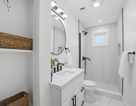 This absolutely stunning New Construction residence showcases refined design, modern finishes, and exceptional versatility across 3 thoughtfully designed levels. The main level welcomes you with a sun-filled open-concept living space, highlighted by gleaming hardwood floors, recessed lighting & a beautiful fireplace. The chef’s kitchen is beautifully appointed with quartz countertops, custom cabinetry, premium stainless steel appliances, and a striking center island—perfect for both everyday living & entertaining. The kitchen flows seamlessly into the dining area, where sliding glass doors lead to a private composite deck. The primary suite offers a private retreat w a beautifully tiled shower-tub bath. Additional bedrooms provide generous closet space, while a dedicated home office creates the perfect setting for remote work or quiet study. The finished walkout lower level expands the home’s living space with an inviting family room, along with a large mudroom and direct entry garage.